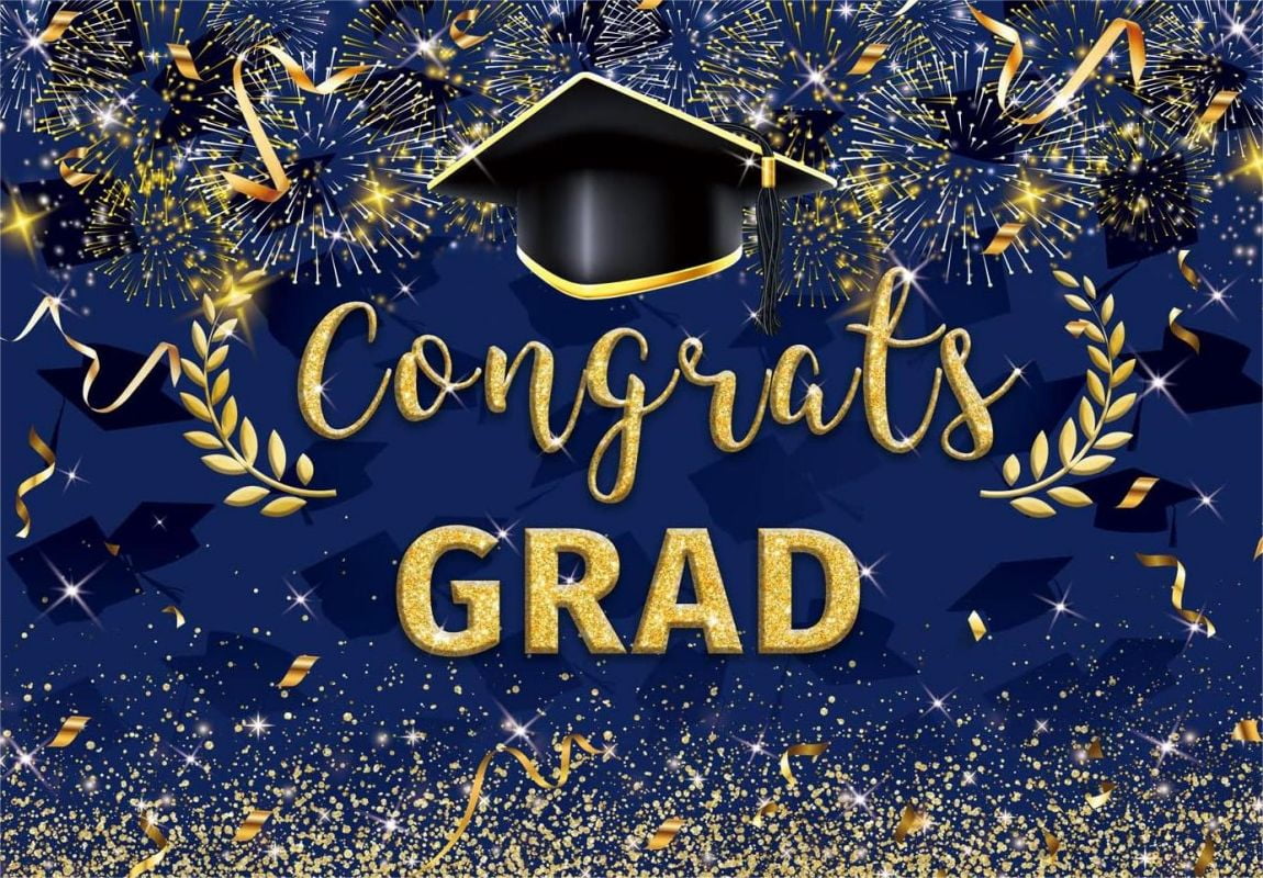 Graduation Backdrop Photography Blue Gold Glitter Background Congrats ...