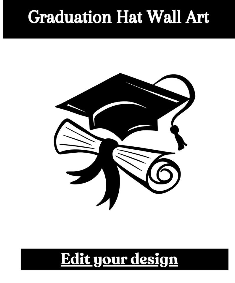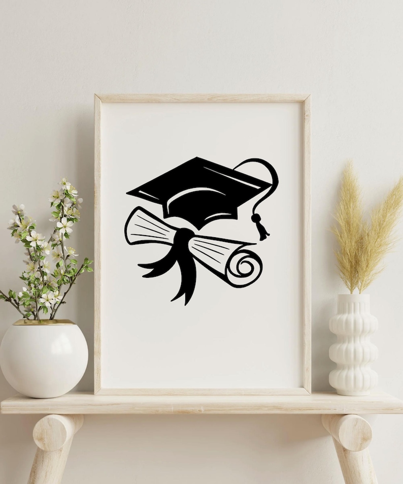 Graduation Cap diplôme impression d'art au trait, art mural minimaliste ...