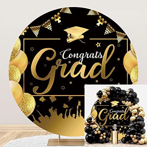Amazon.com : Congratulations Grad Round Backdrop Cover Black and Gold ...