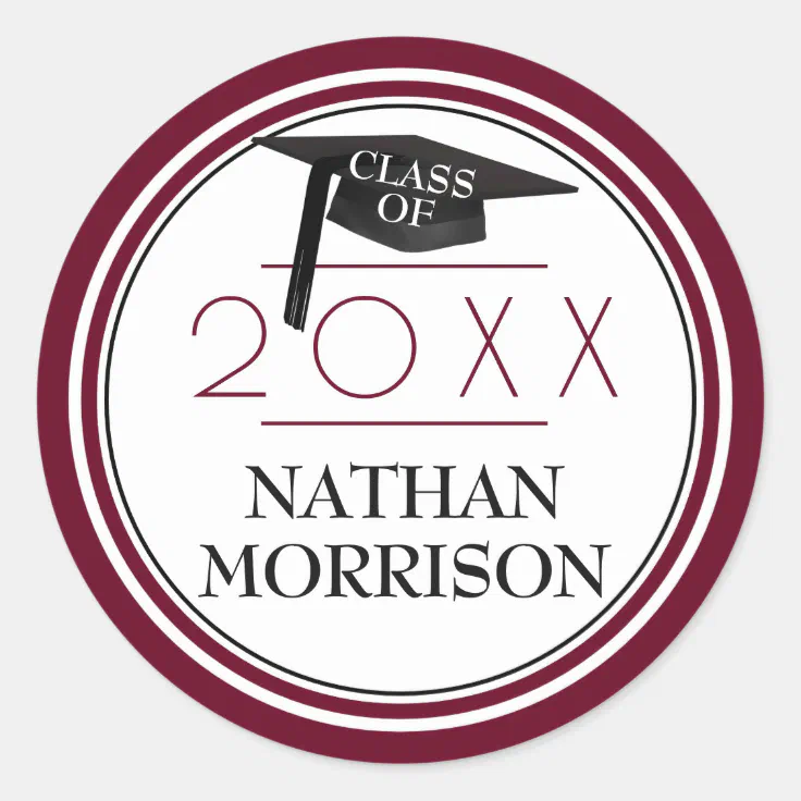 Class of | Grad Cap & Year | Burgundy/Maroon Classic Round Sticker | Zazzle