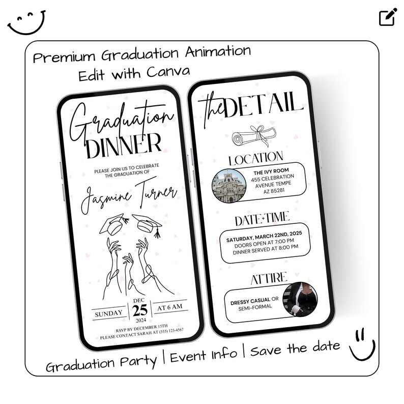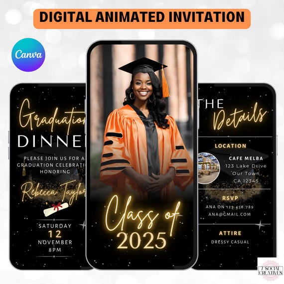 Graduation Dinner Invitation Template Digital Graduation Party Animated ...
