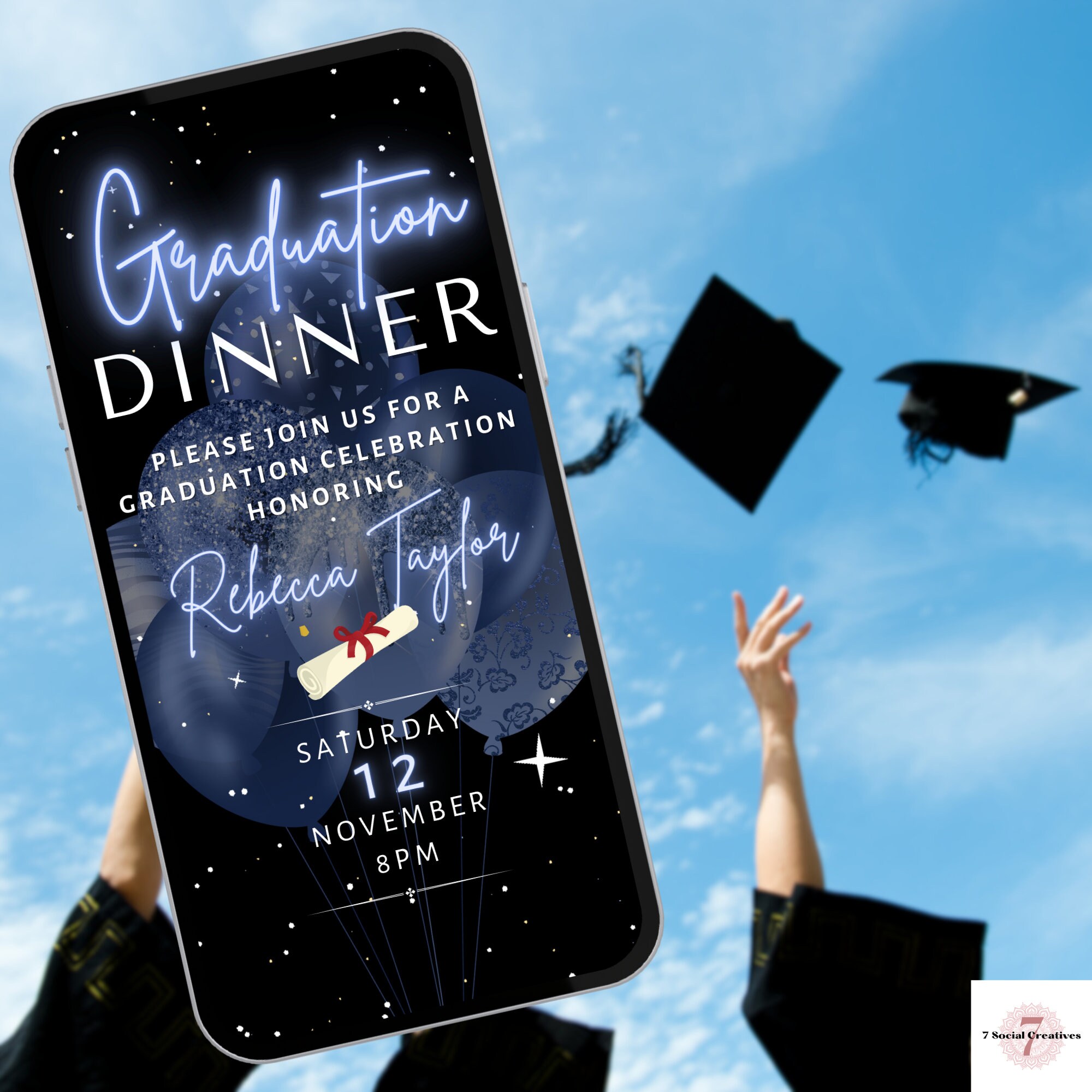 Simple Graduation Dinner Invitation Template, Instant Download, Phone ...