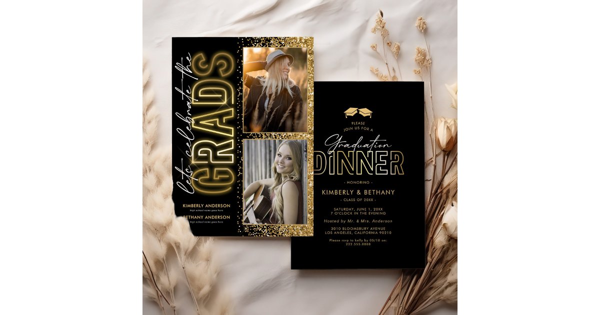 Black Gold Double Graduation Dinner Invitation | Zazzle