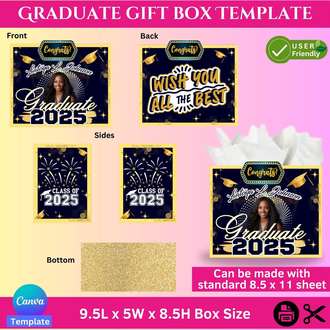 Graduation Gift Box Canva Template, Graduation Gift, Gift Box, Grad ...
