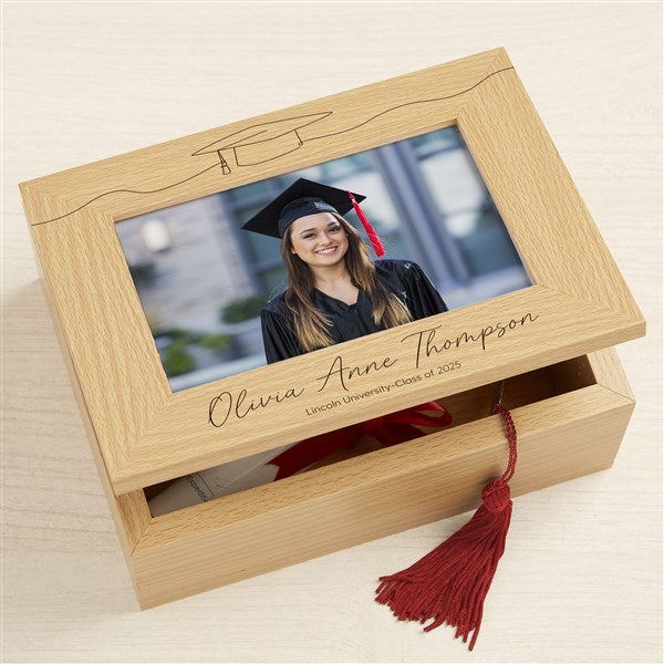 Personalized Graduation Photo Keepsake Box - Scripty Grad Cap