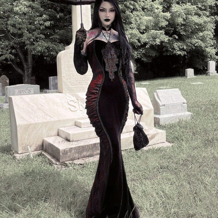 Lanshulan Lace Cold Shoulder Split Sleeve Goth Vintage Dresses ...