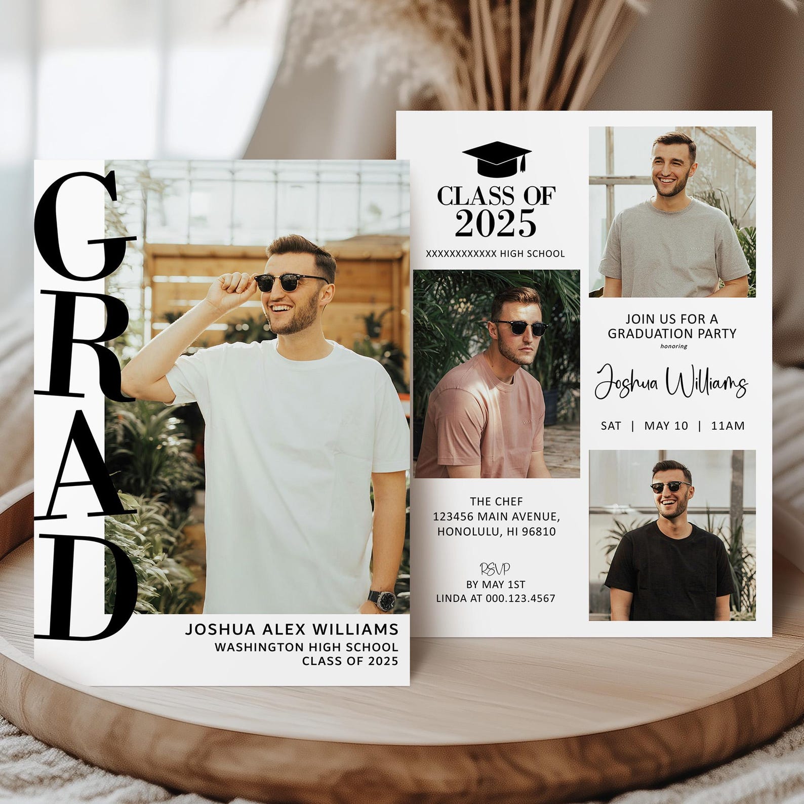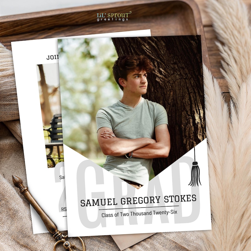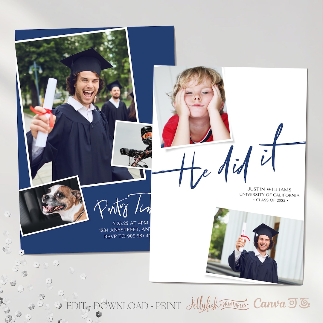Printed Graduation Invitation for Boys 2 Photos Announcement for Guys ...