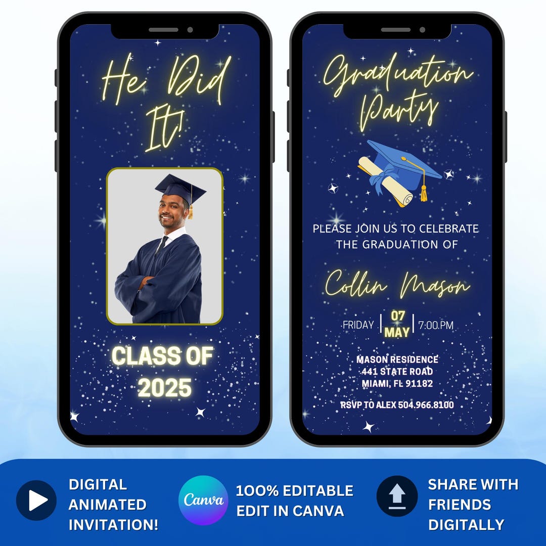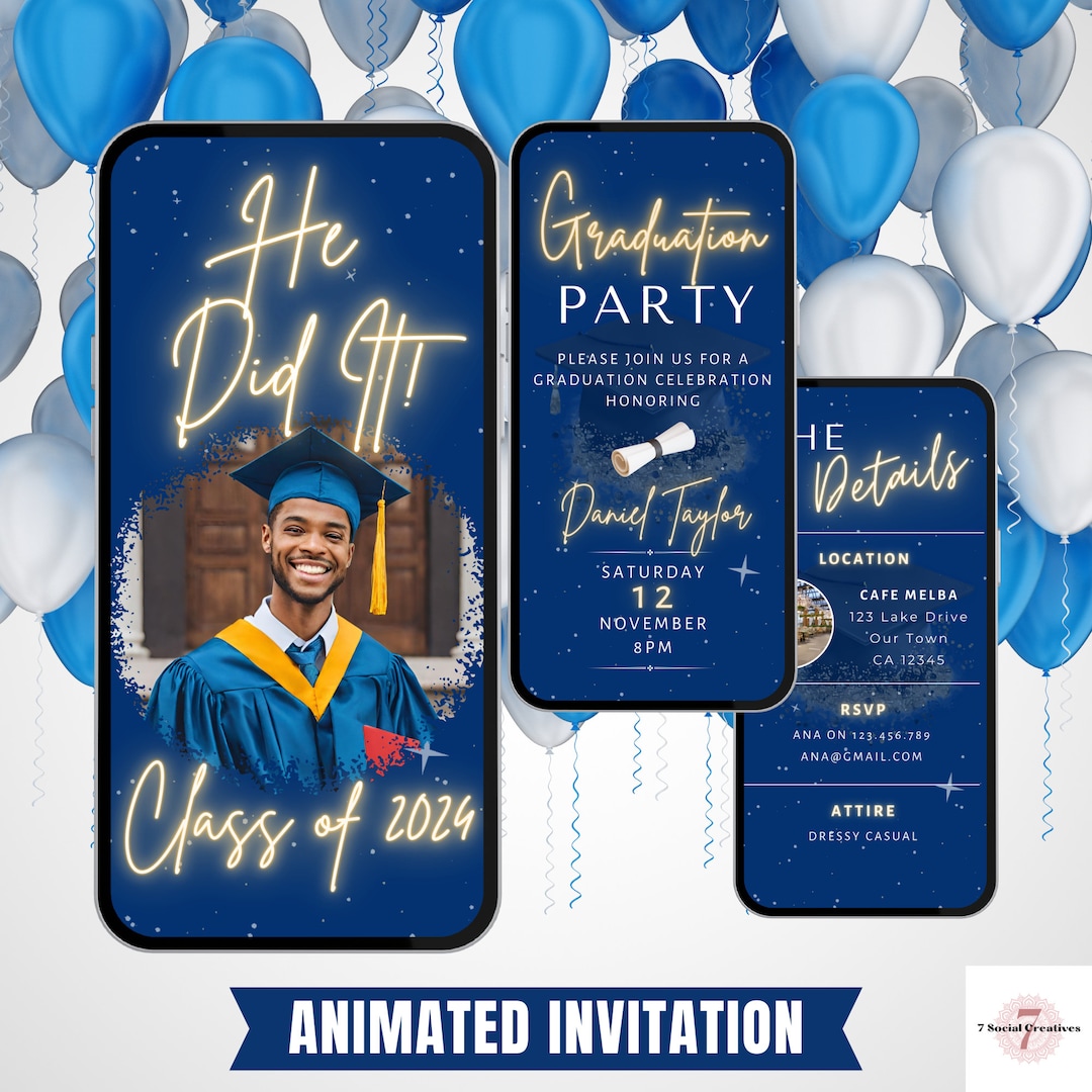 Graduation Party Invitation for Him. Digital Animated Grad Invite. Boys ...