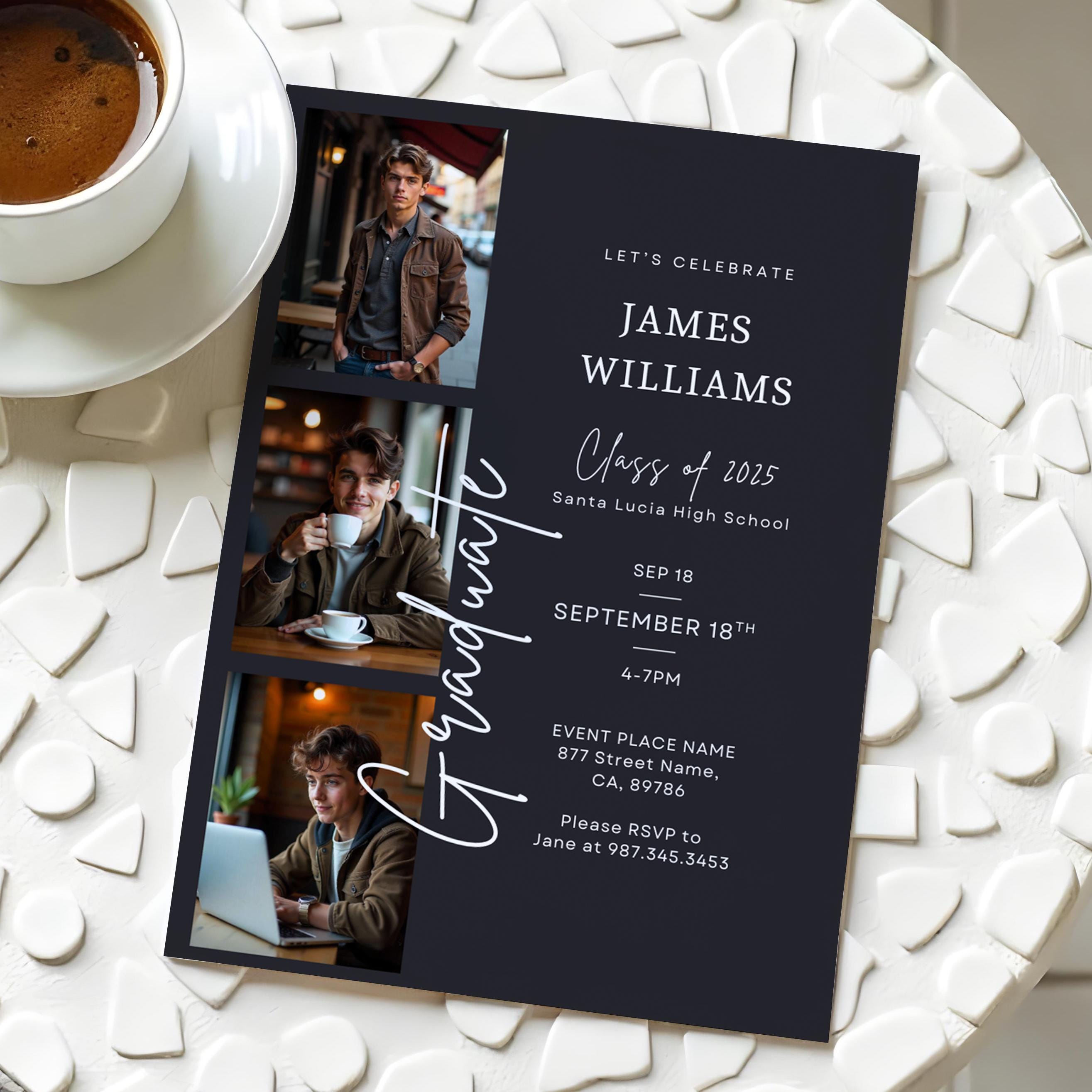 Classy Graduation Invitation, Boy Graduation Invite, Digital, Immediate ...