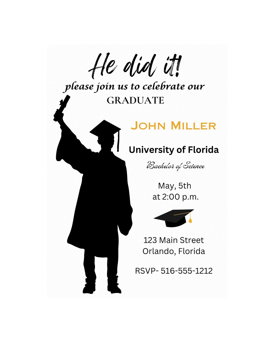 Editable Male Graduation Invitation College Graduation - Etsy
