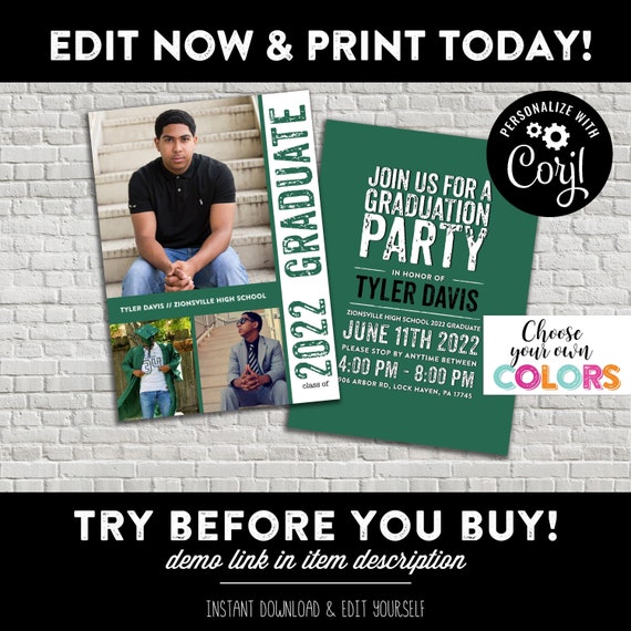 Boy Graduation Party Invitation CUSTOM COLOR Template Editable ...