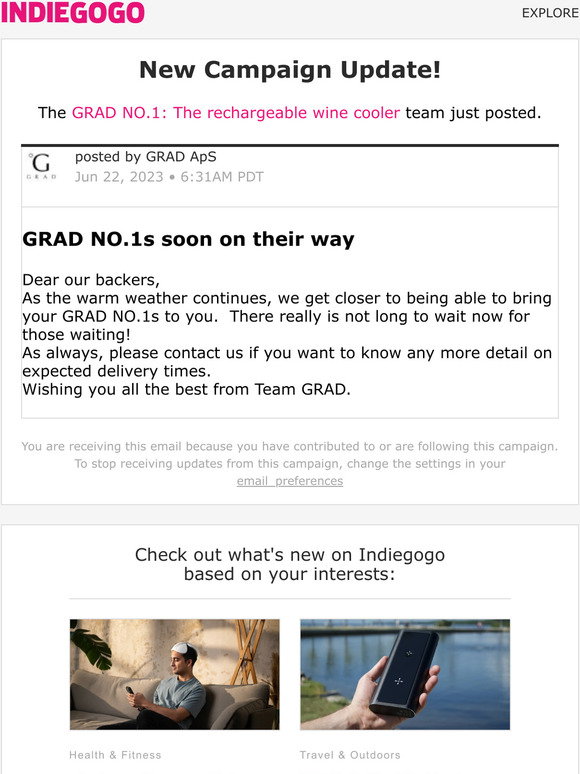 Indiegogo: 📢 Update #20 from GRAD NO.1: The rechargeable wine cooler ...