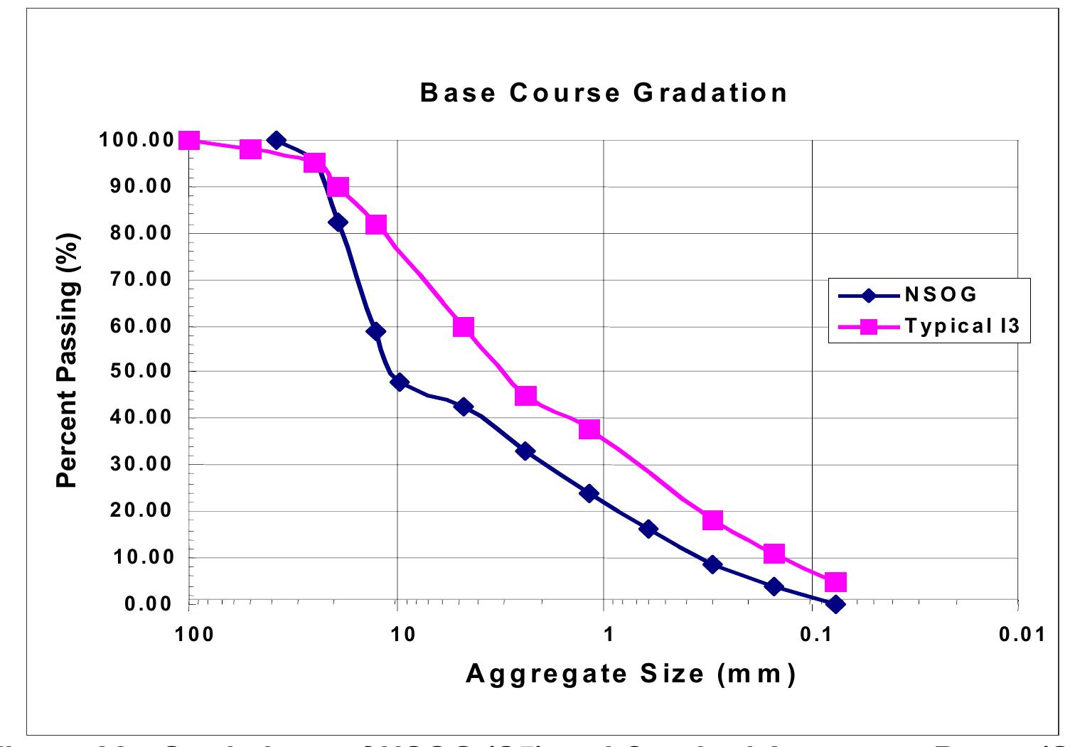Requirement of different base course aggregate gradation, AASHTO M 147 ...