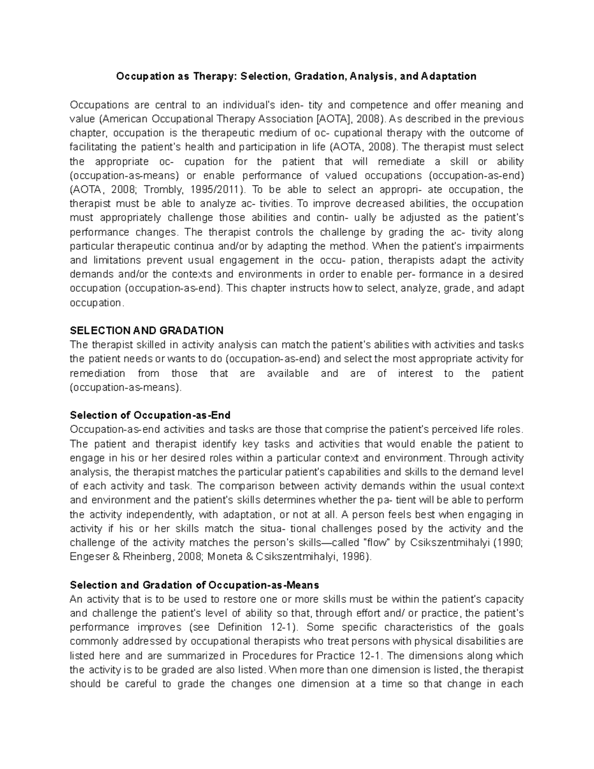 Occupation as Therapy - Selection, Gradation, Analysis, and Adaptation ...