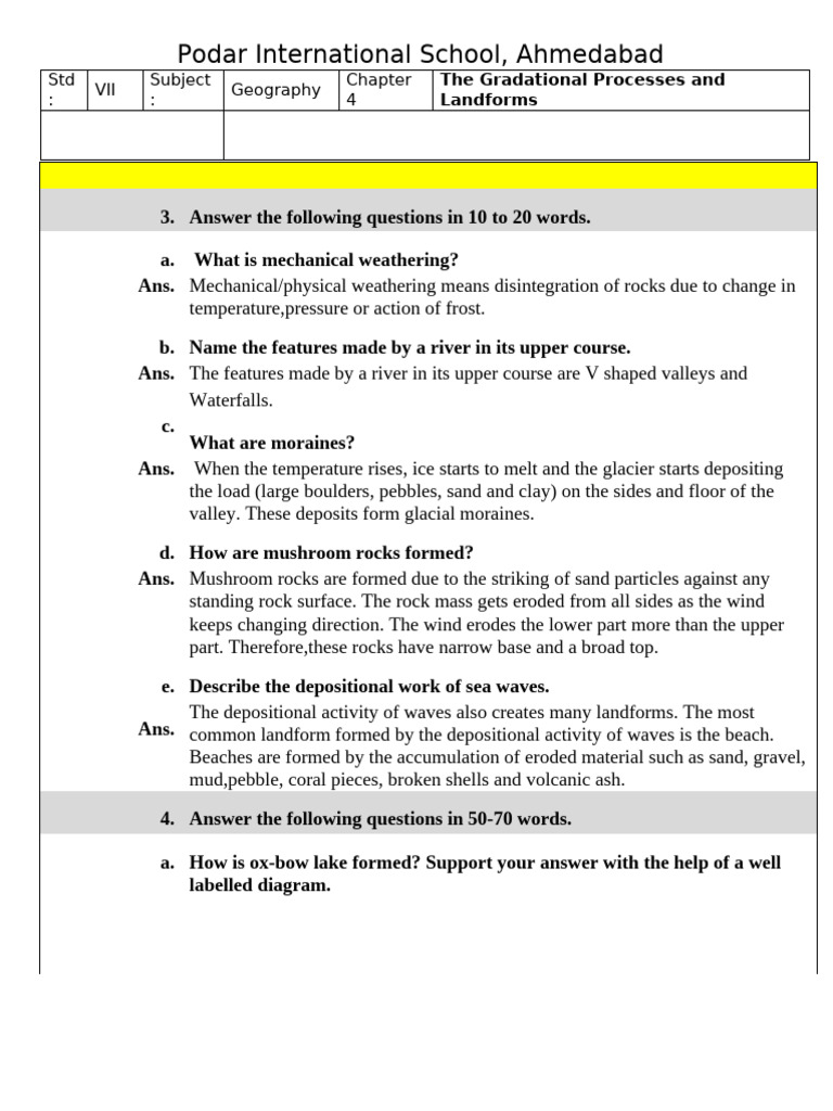 Geography - CH4 - The Gradational Processes and Landforms - Notes | PDF ...