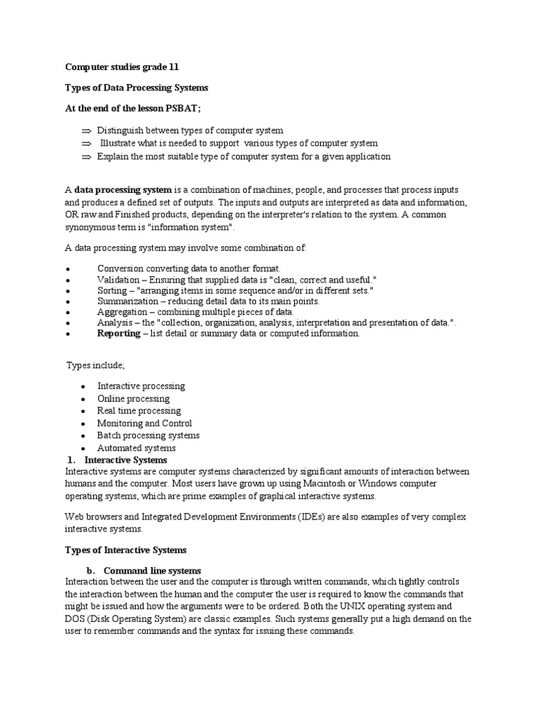 Grade 11 Computer Science: Info Processing Cycle Notes 2025/26 - Studocu
