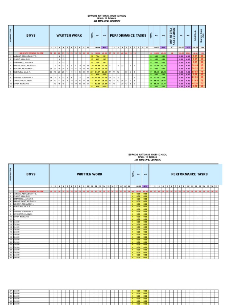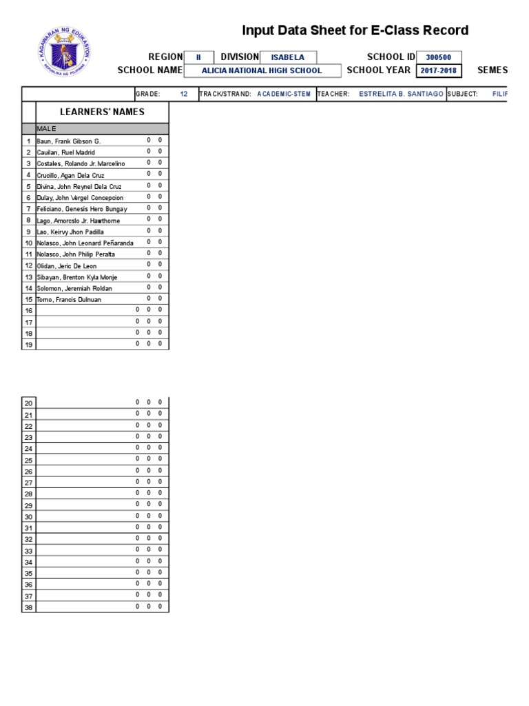 Grade 12 Electronic Class Record | PDF | Science, Technology ...