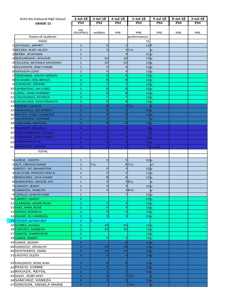 Grade 12 Class Record HUMSS | PDF