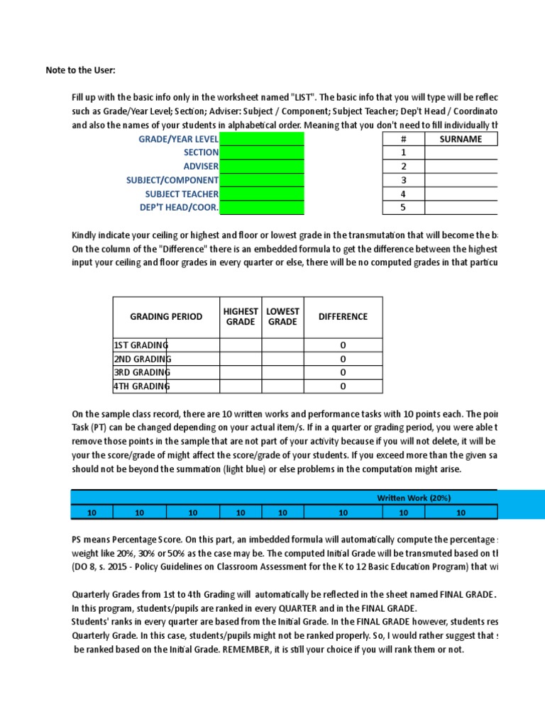Class Record Template | PDF