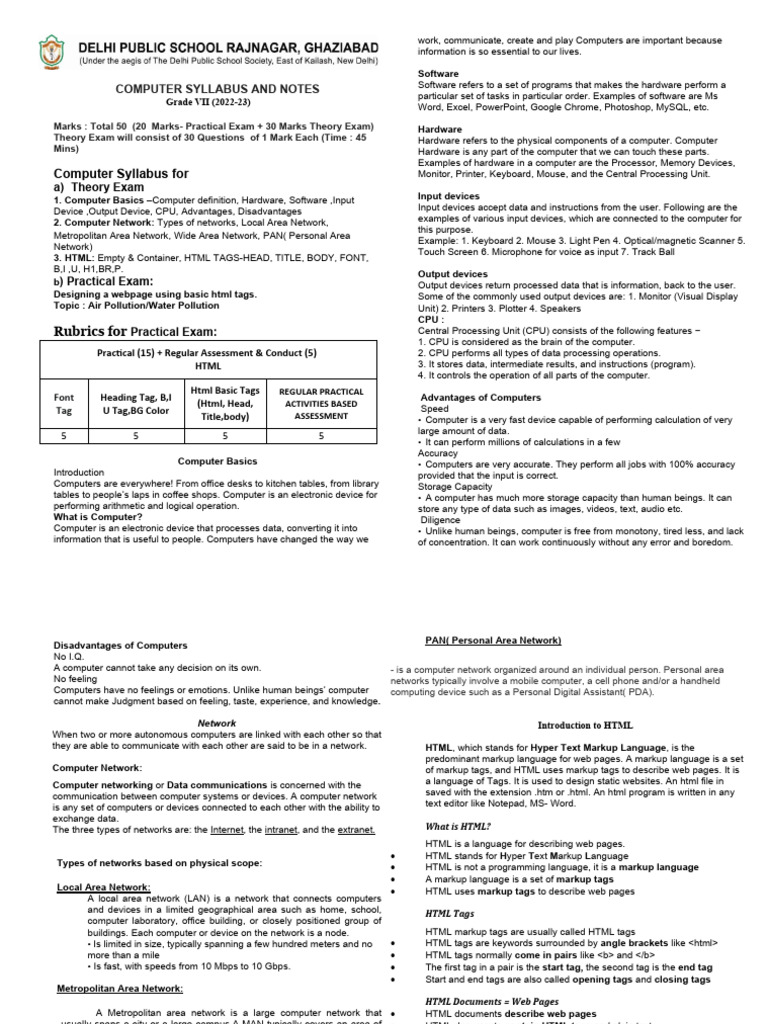 CLASS VII COMPUTERS HTML | DOCX