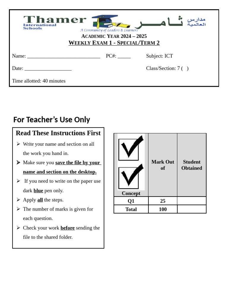 Grade 7 HTML Exam 1 Term2 For Mariam Fadl - Answers | PDF | Tag ...