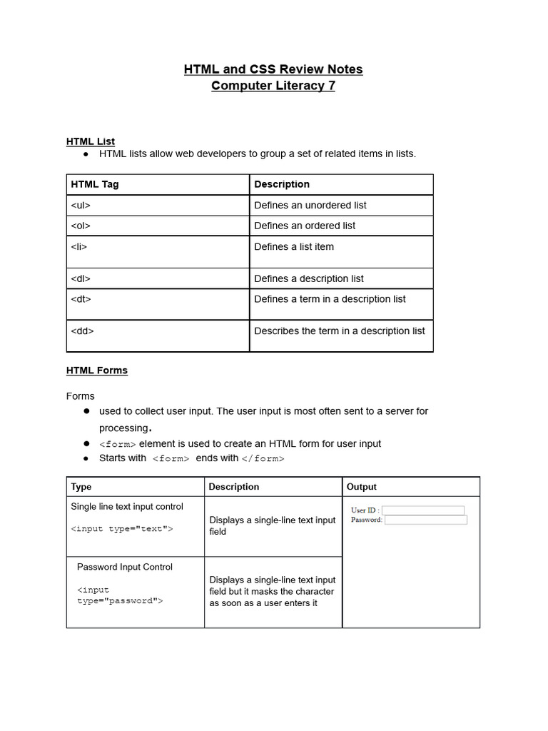 GRADE 7 Handout | PDF | Html Element | Html