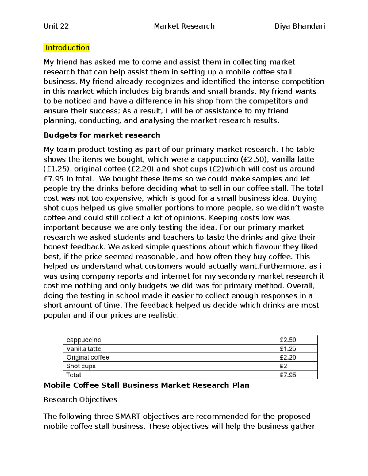 Unit 22 Market Research: Mobile Coffee Stall Business Insights - Studocu