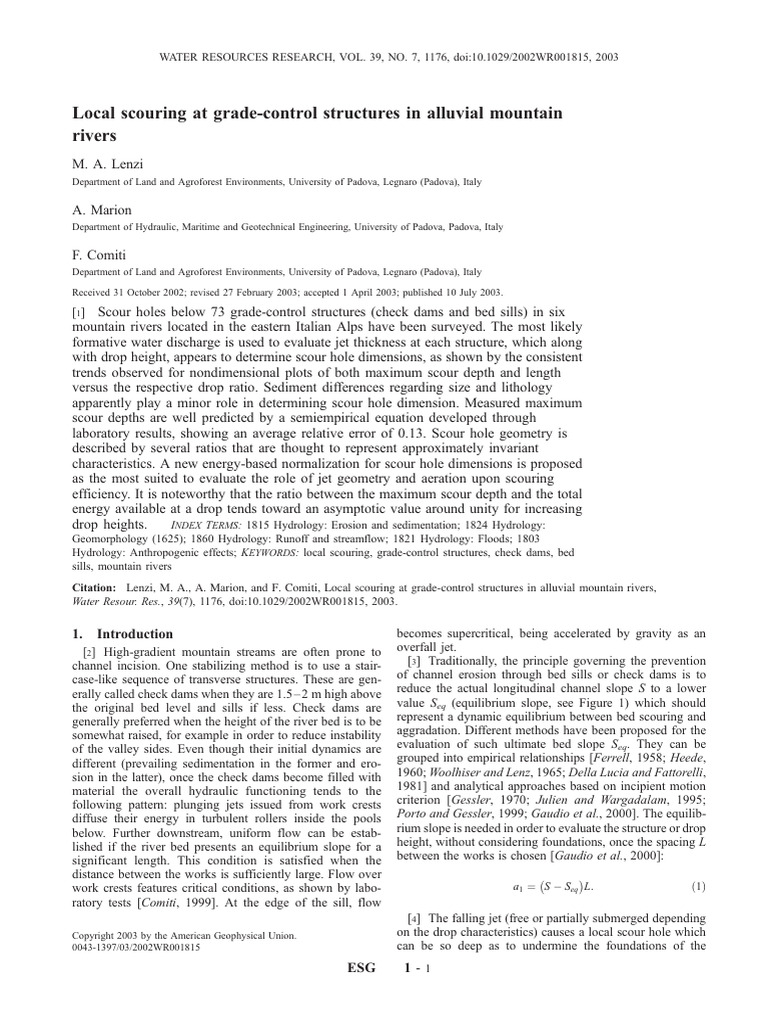 Local scouring at grade‐control structures in alluvial mountain rivers ...