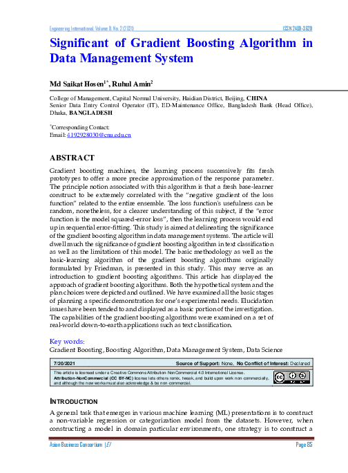 (PDF) Significant of Gradient Boosting Algorithm in Data Management System