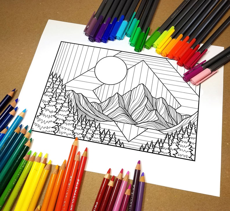 Mountain Gradients Coloring Page Digital Download | Etsy