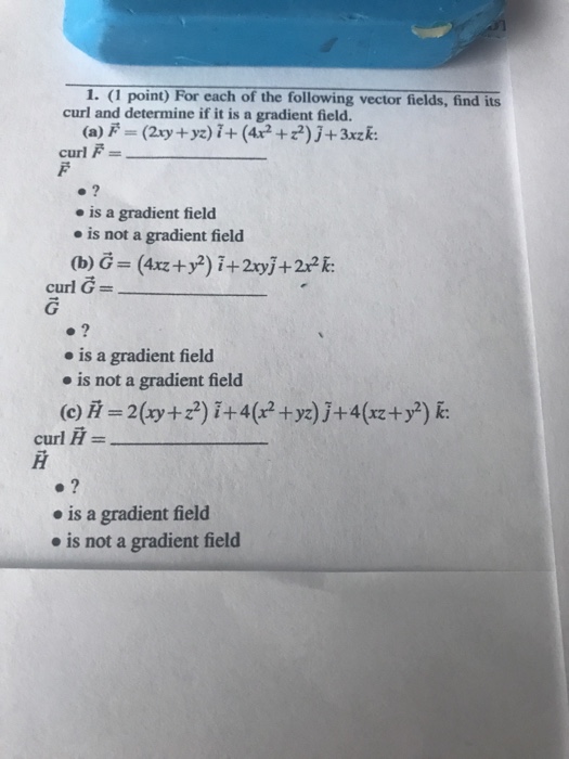 Solved 1. (I point) For each of the following vector fields, | Chegg.com