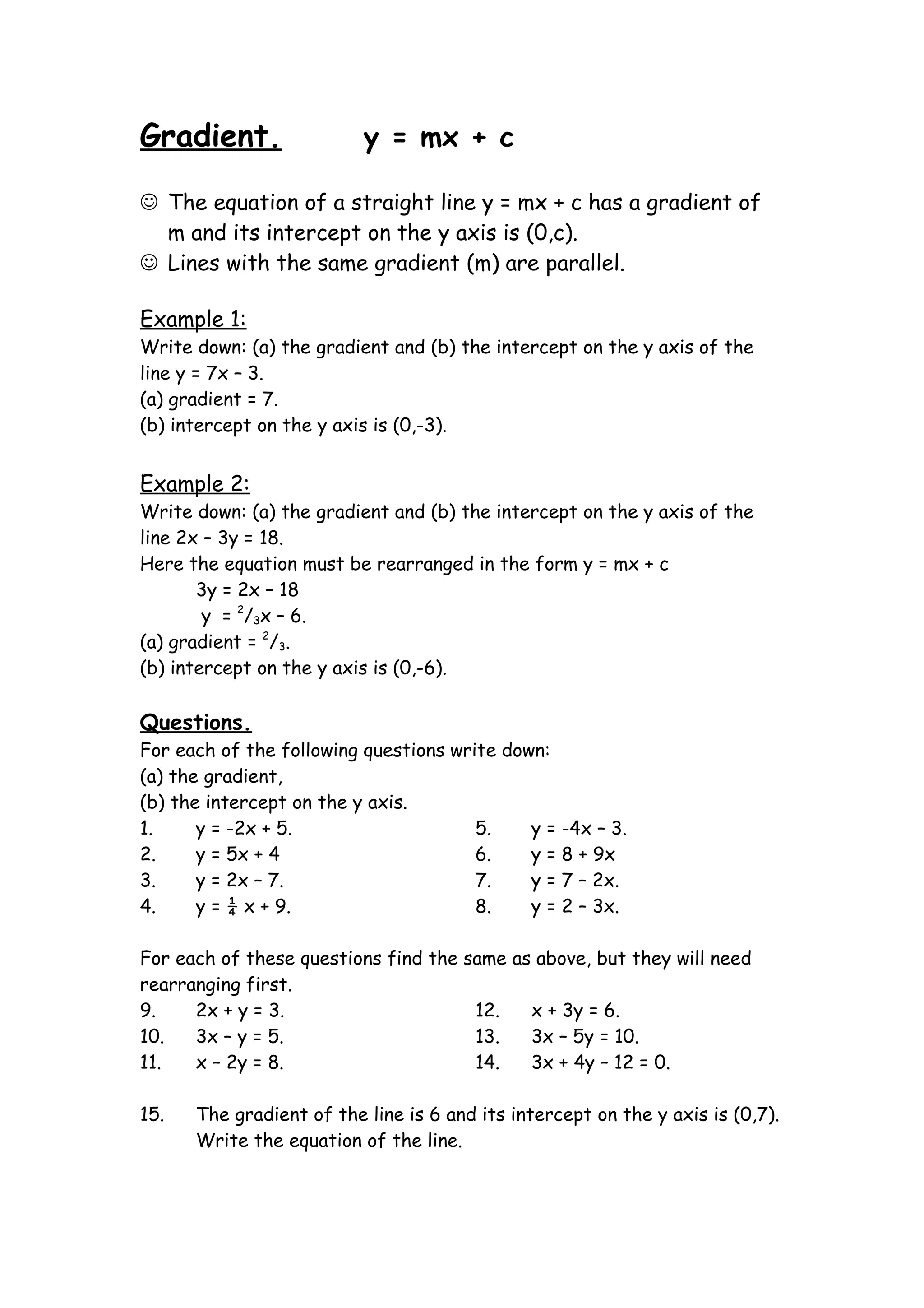 Gradient and y – intercept by rearrangement – Starting Points Maths