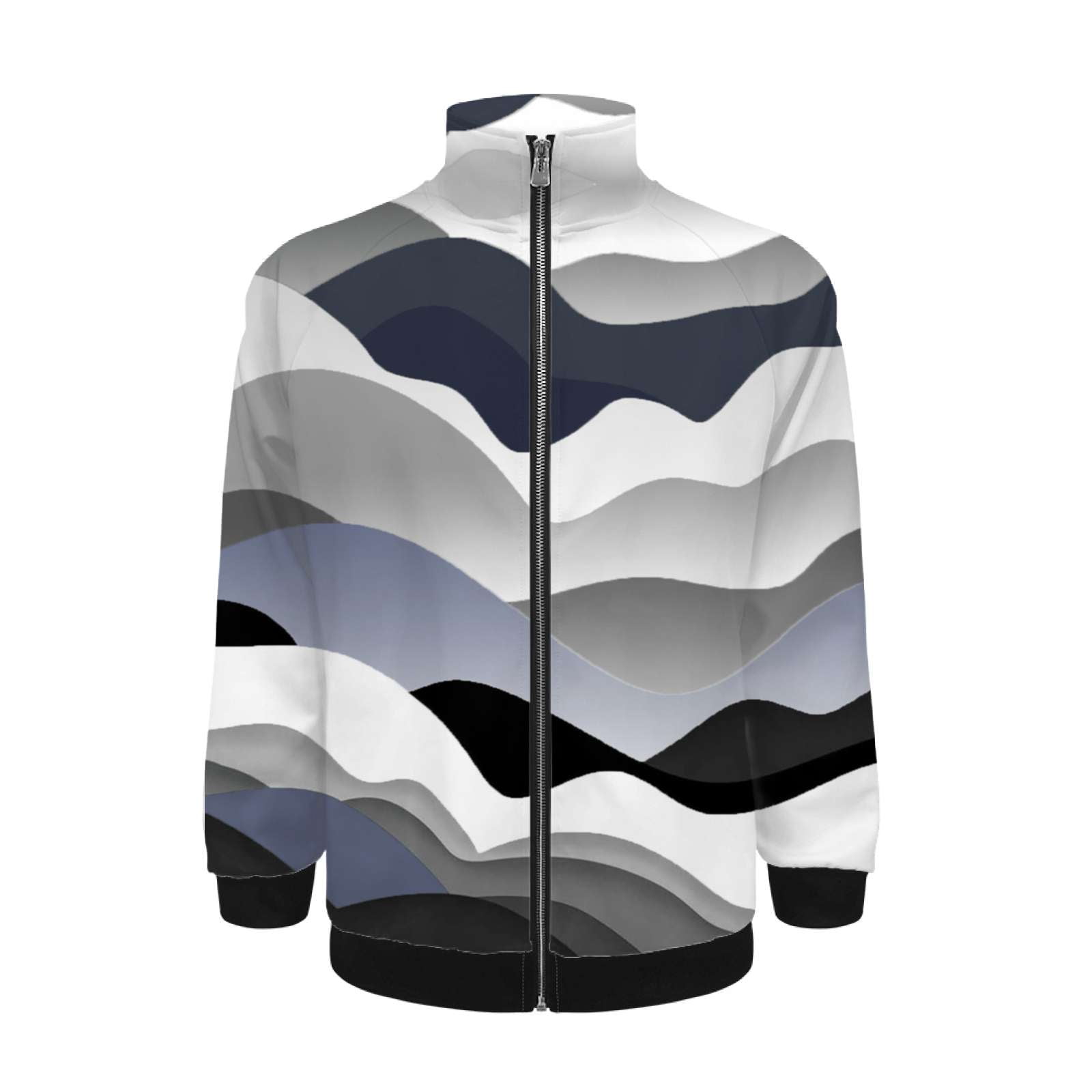 Gray Black White Gradient Abstract Jacket Men's Street Cool Long ...