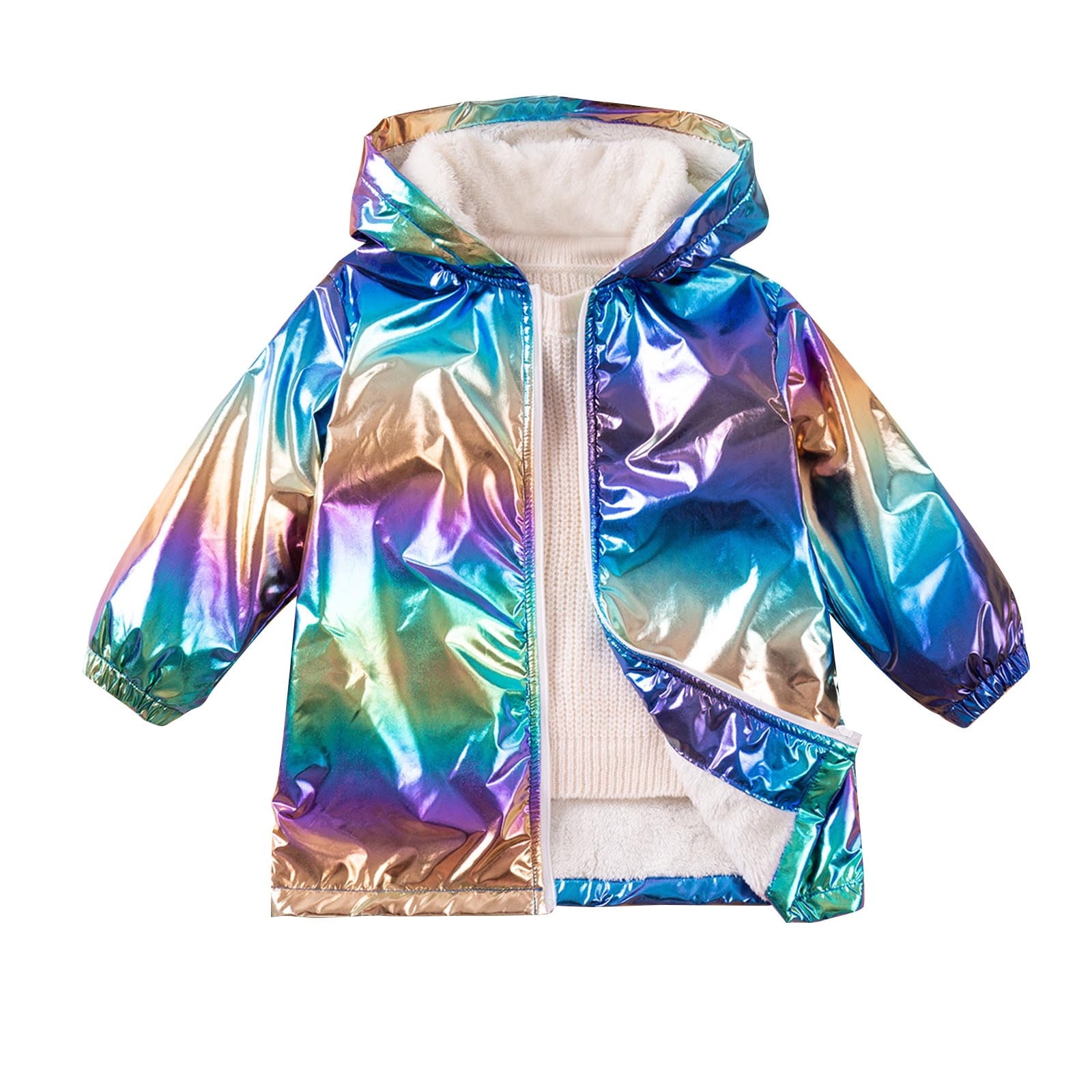 Mwjwdo Rainbow Reflective Jacket for Girls Trendy Gradient Shiny Hooded ...