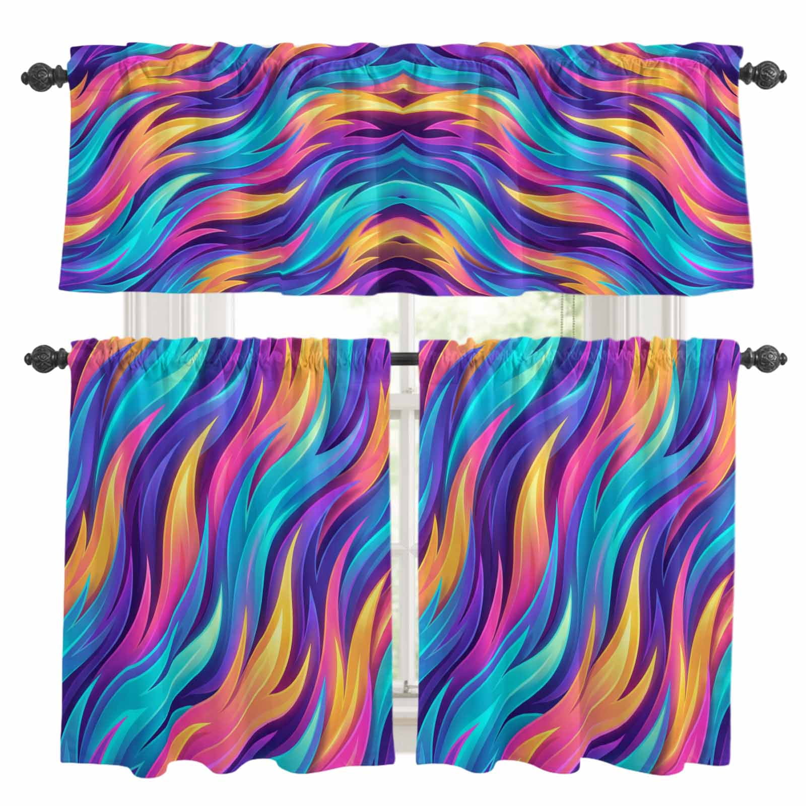 Abstract Gradient Art Kitchen Curtains Valance and Tier Set Blue Purple ...