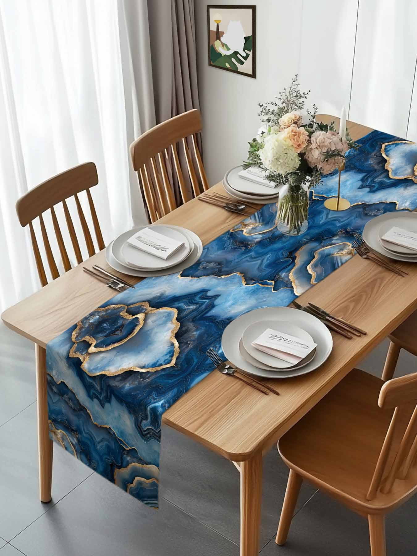 Abstract Gradient Blue Marble Texture Table Runner 90 Inches Long ...