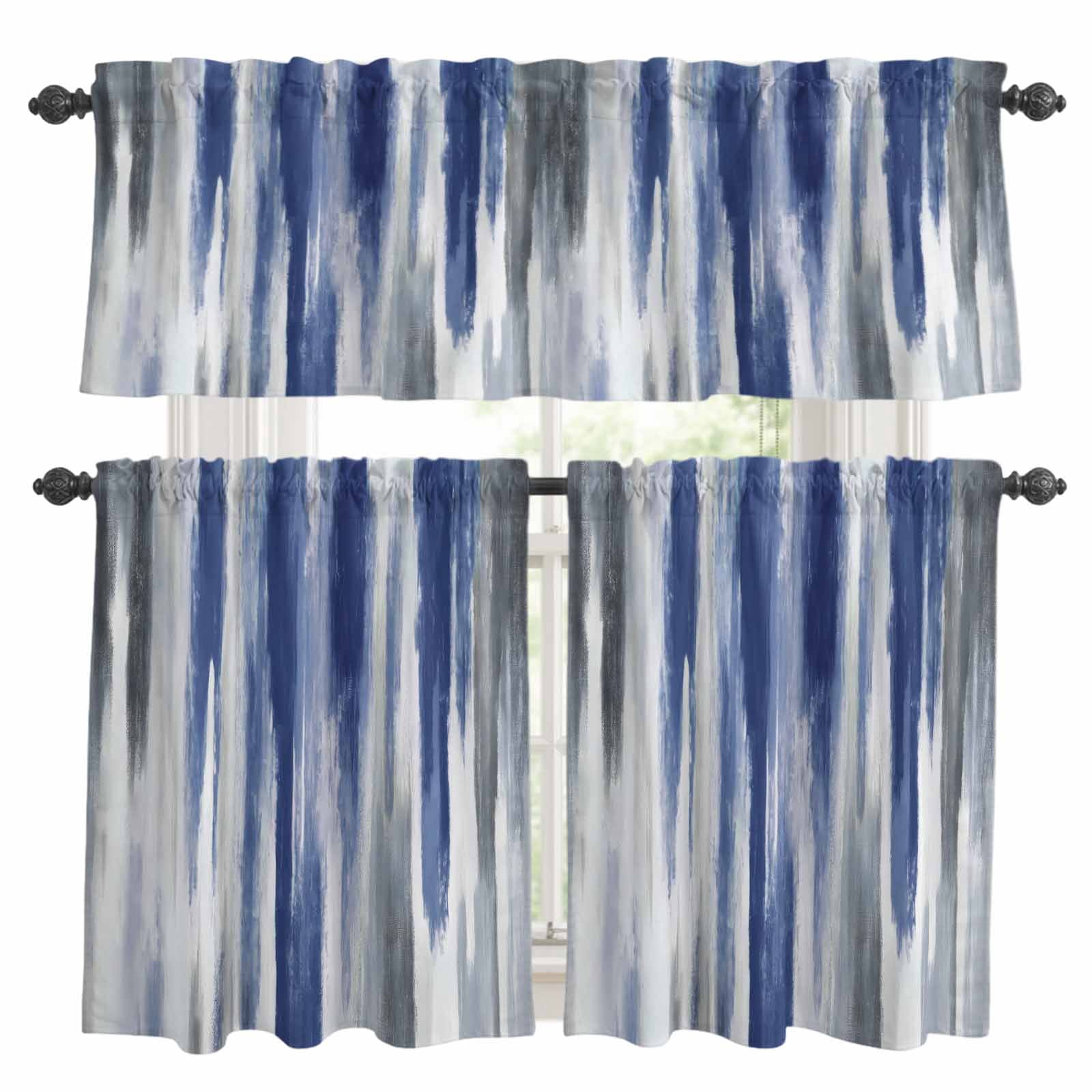 Abstract Grey Kitchen Curtains Valance and Tier Set Navy Blue Mottled ...