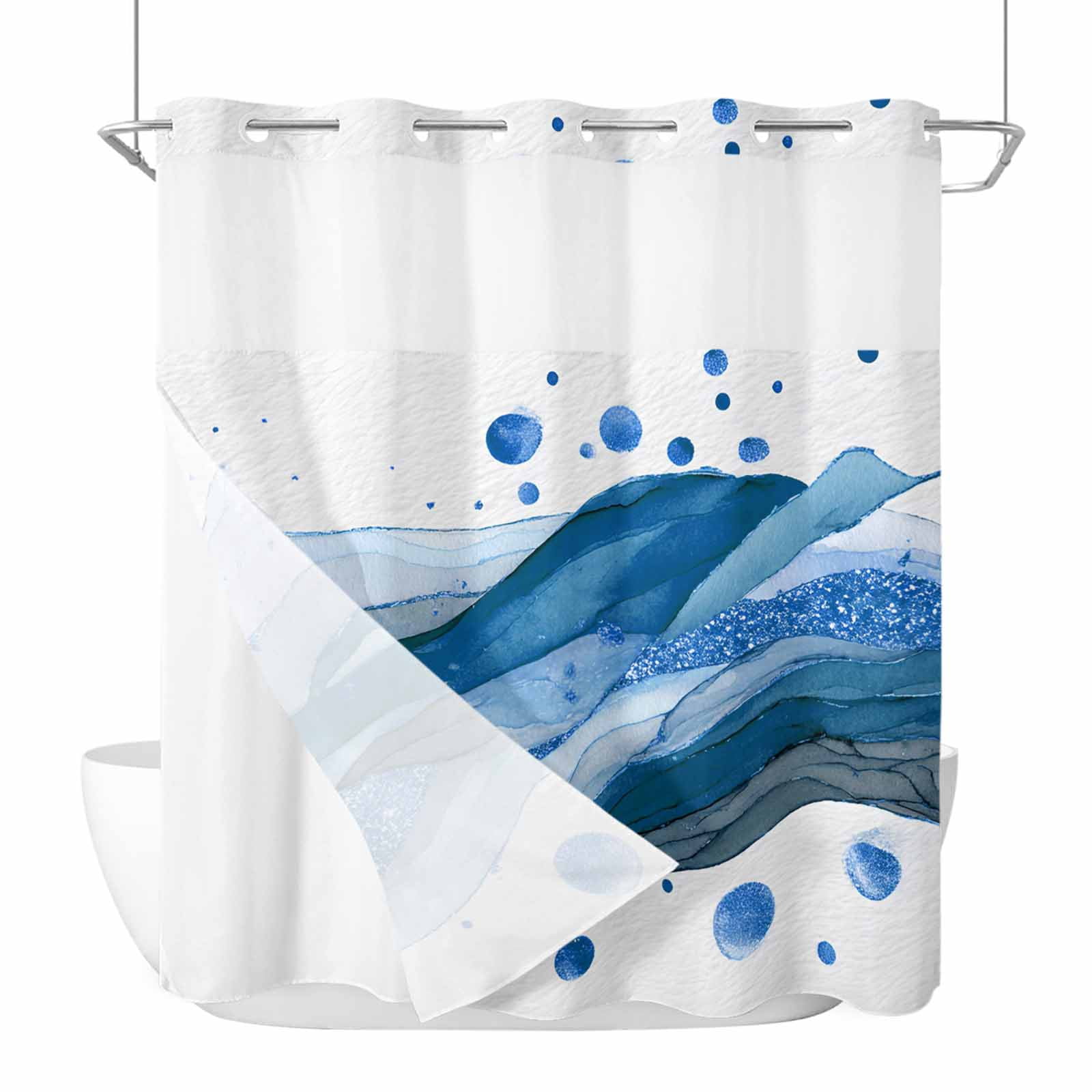 Blue Marble No Hook Shower Curtain with Snap in Liner, Waterproof ...