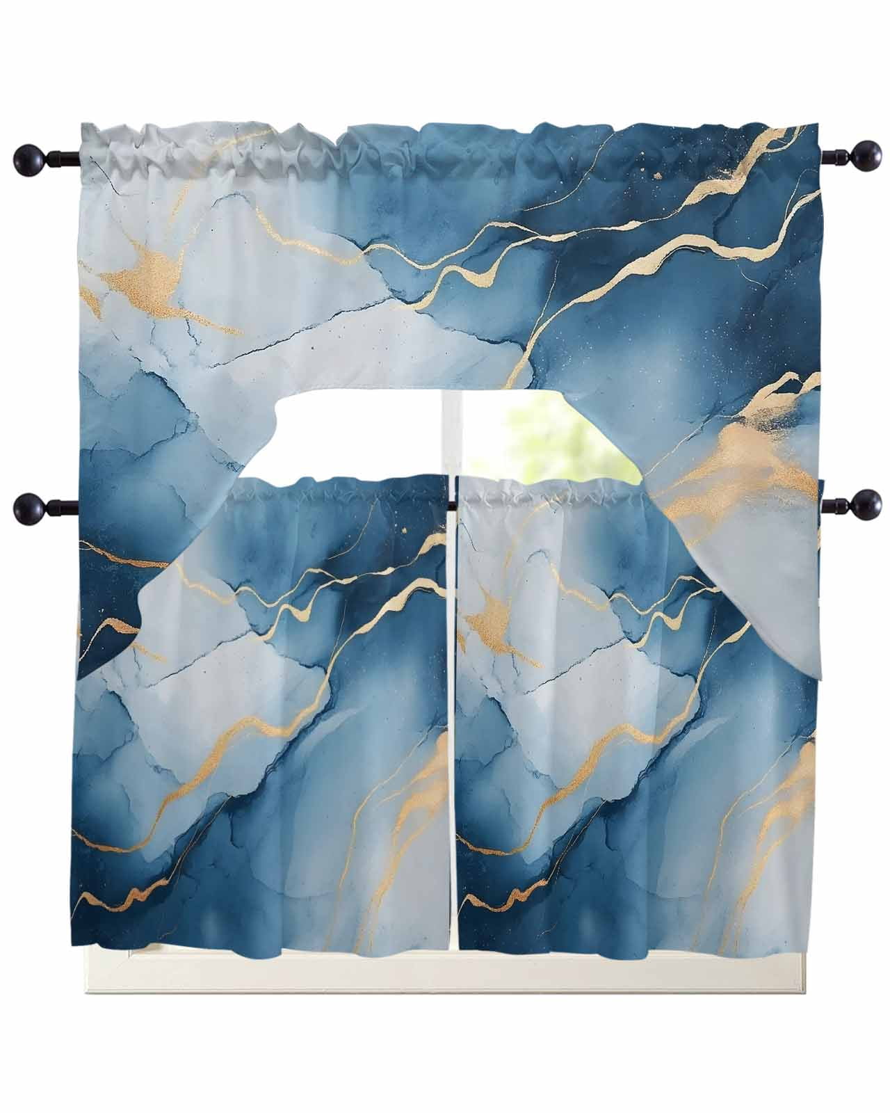 Blue Marble Swag Valance for Window, 3 Piece Gradient Gold Fluid ...