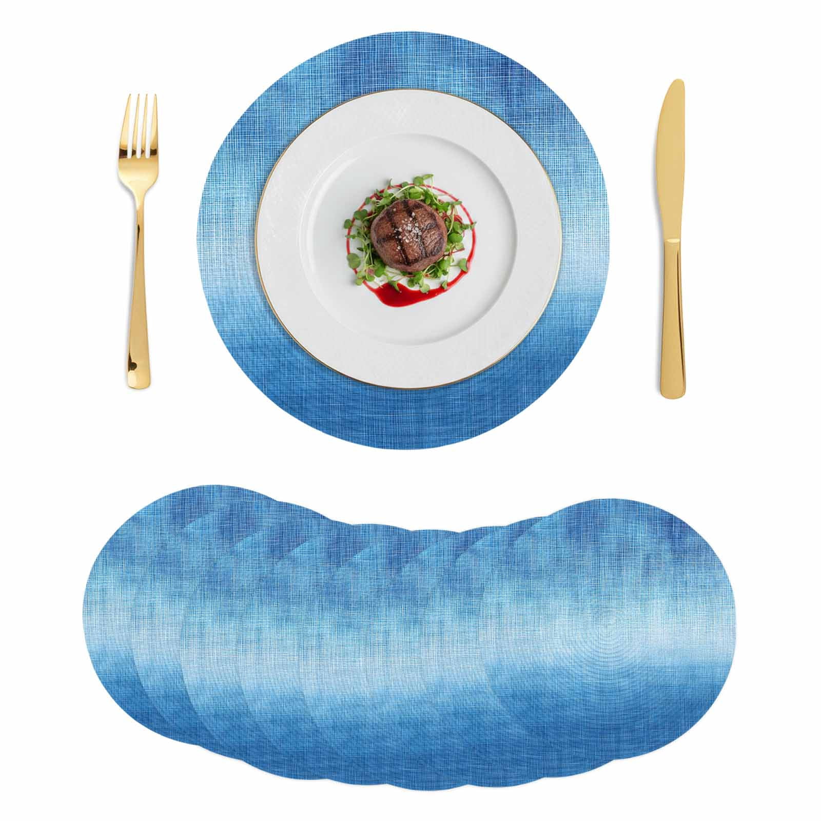 Blue Ombre Round 13 Inch Placemats Set of 6, Vintage Chic Gradient ...