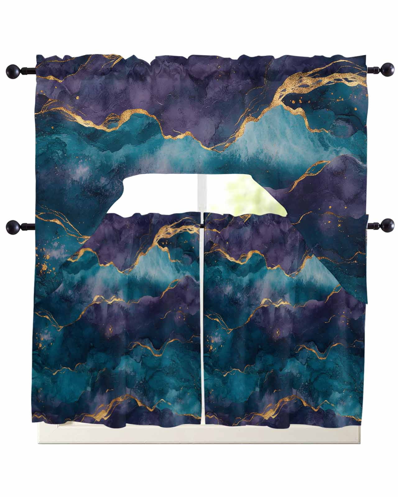 Blue Purple Marble Kitchen Curtains Set for Windows 3 Piece Cafe ...