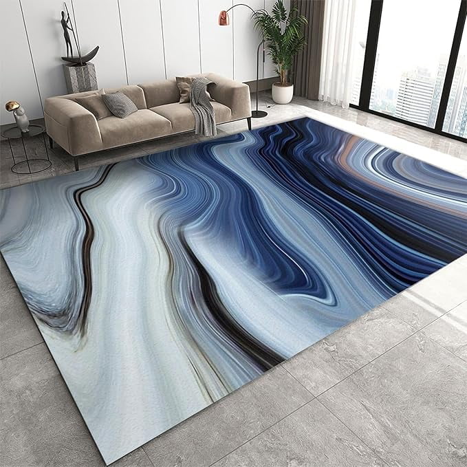 Blue White Black Marble Texture Area Rug, Modern Abstract Gradient Art ...