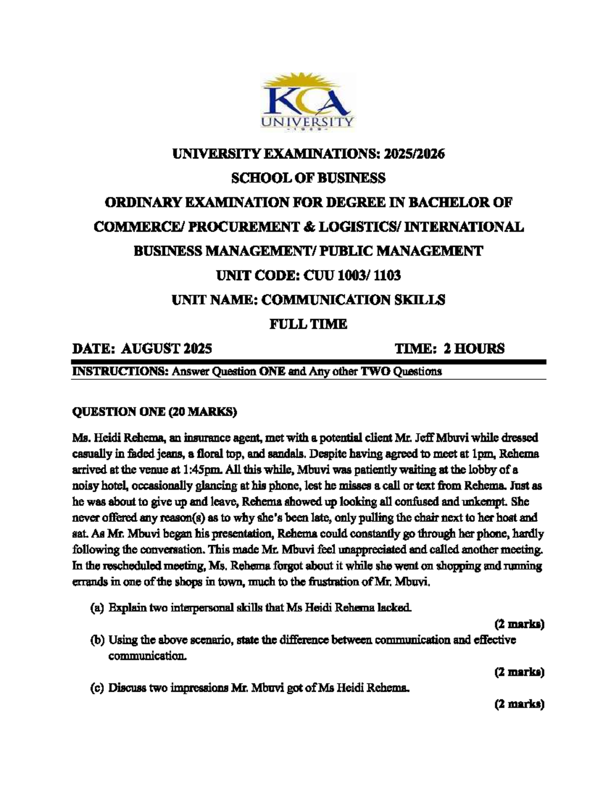 Communication Skills Exam Notes: CUU - August 2025 - Studocu