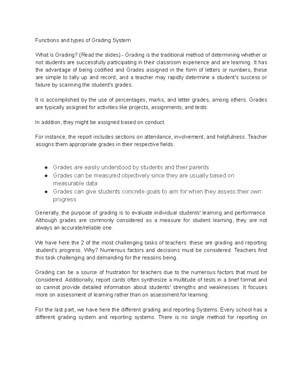 Grading System - Purpose: o A grading system is a method teachers use ...