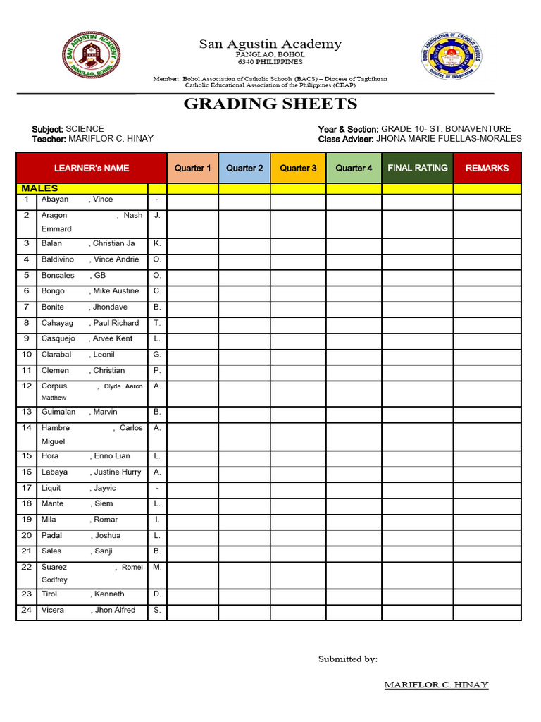 Grading Sheet Template Excel Deped at Katie Kendall blog