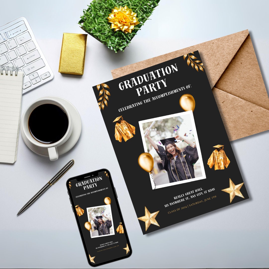 Graduation Invitation Template Printable Editable Electronic Graduation ...