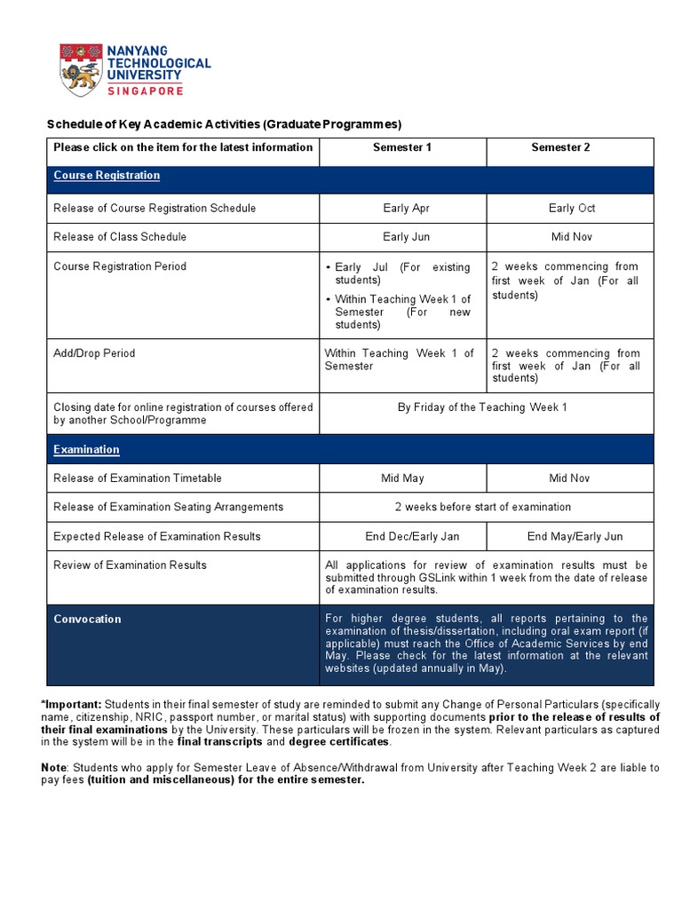 Schedule of Key Academic Activities (Graduate Programmes) : Course ...