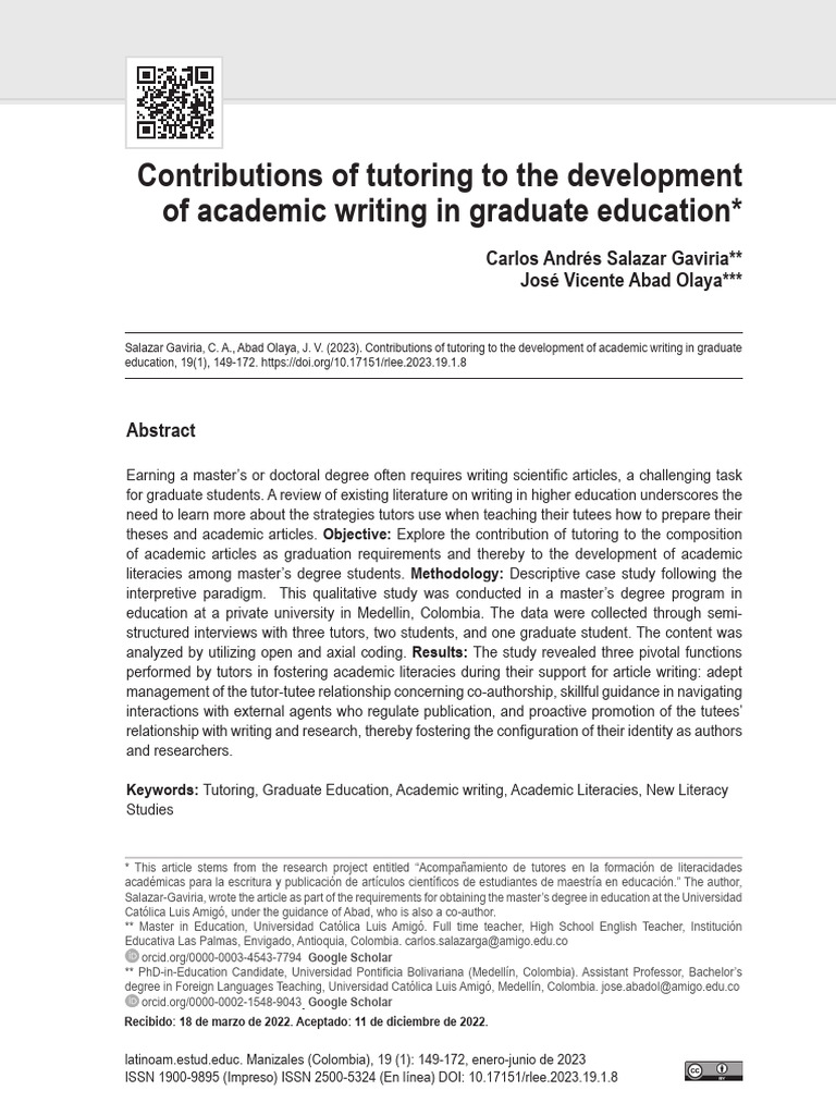 Tutoring's Role in Graduate Writing Skills | PDF | Literacy | Human ...