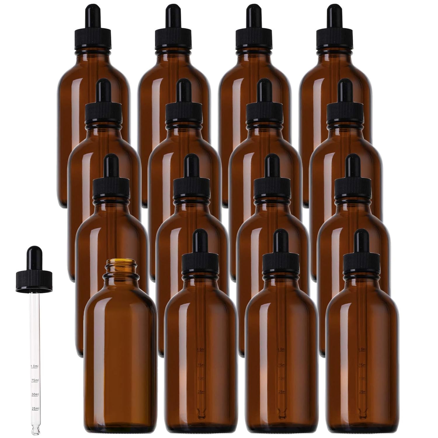 Jucoan 16 Pack Glass Dropper Bottles, 4 oz/120ml Amber Glass Bottles ...