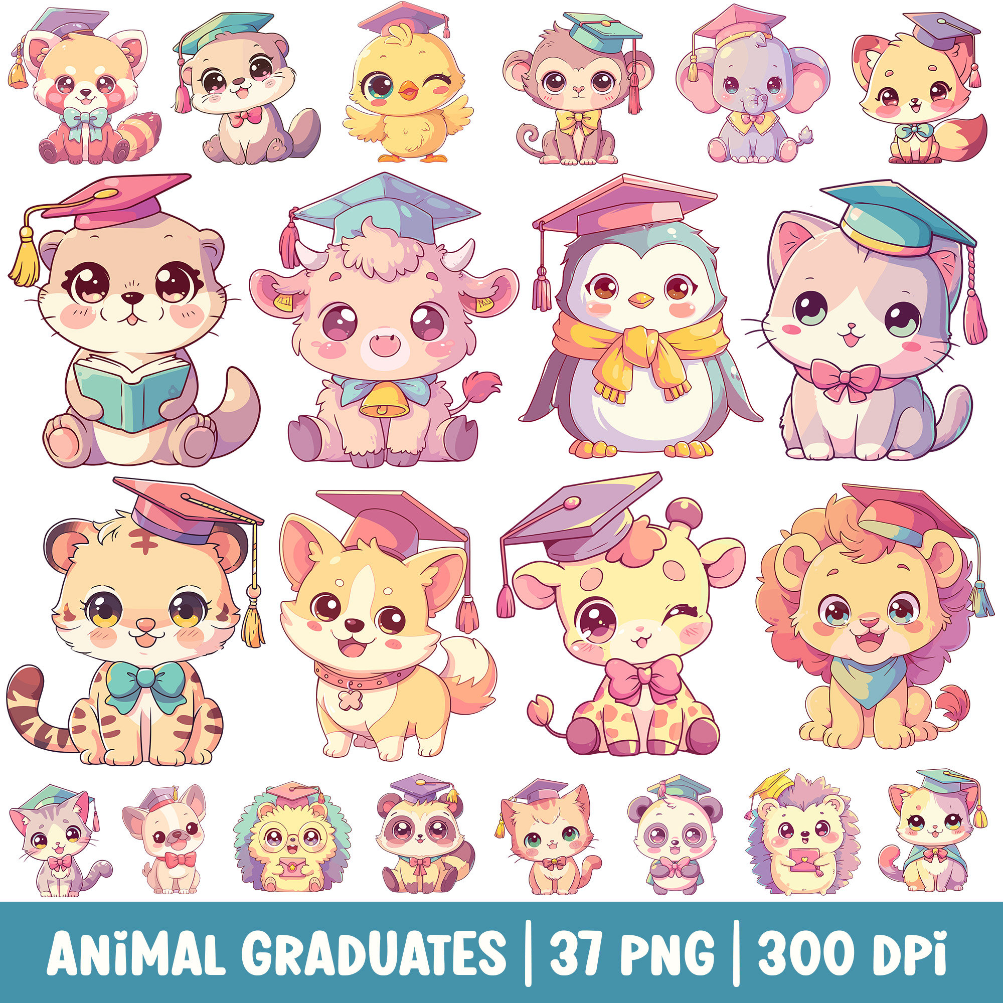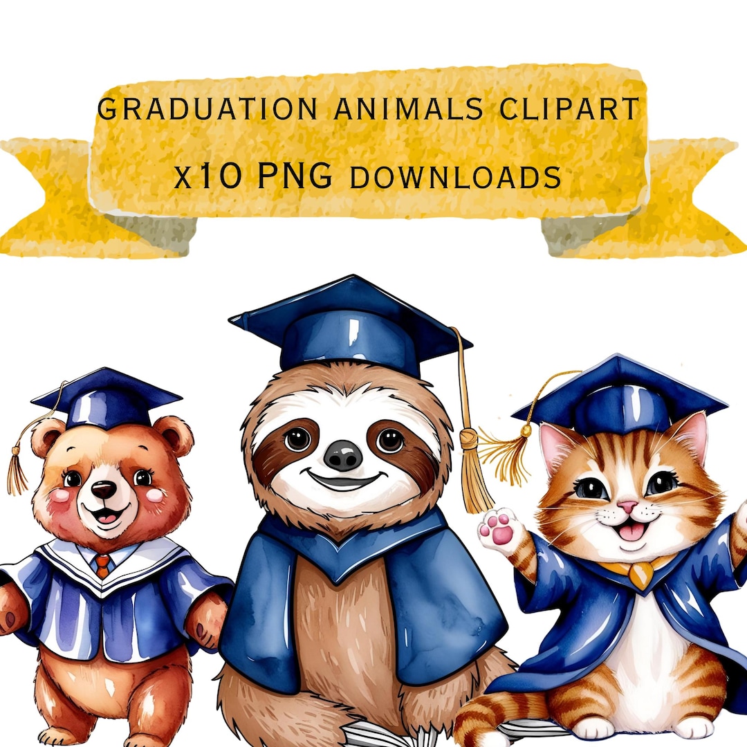 Graduating Cute Animals Transparent PNG Clipart Commercial Use - Etsy